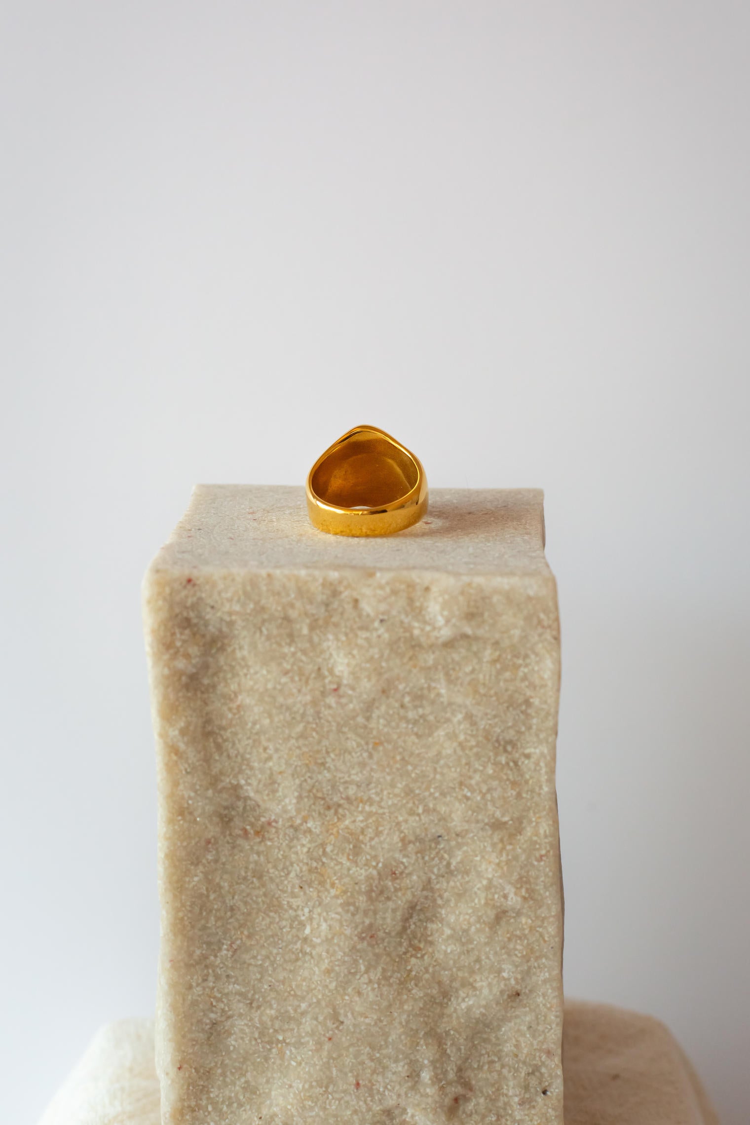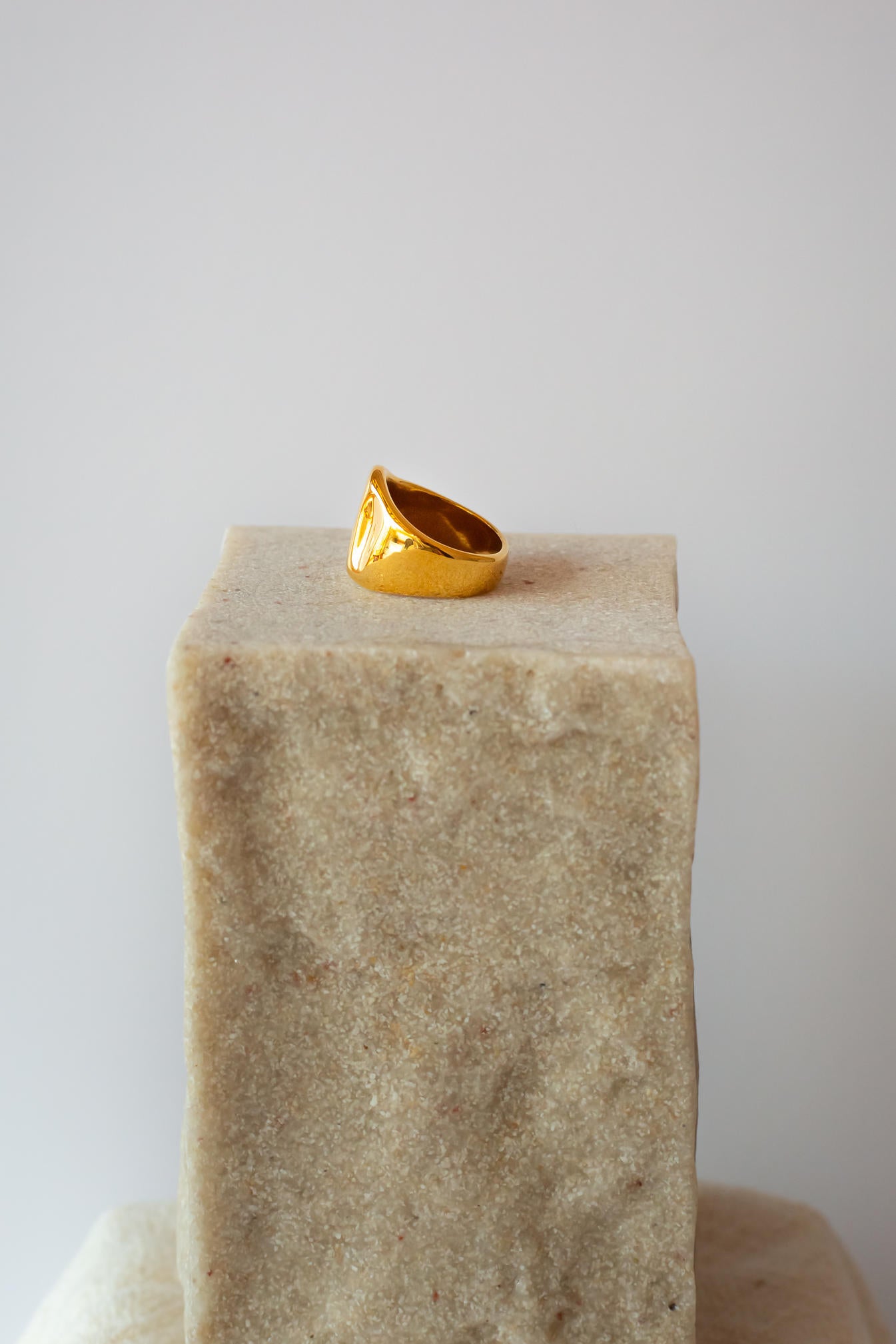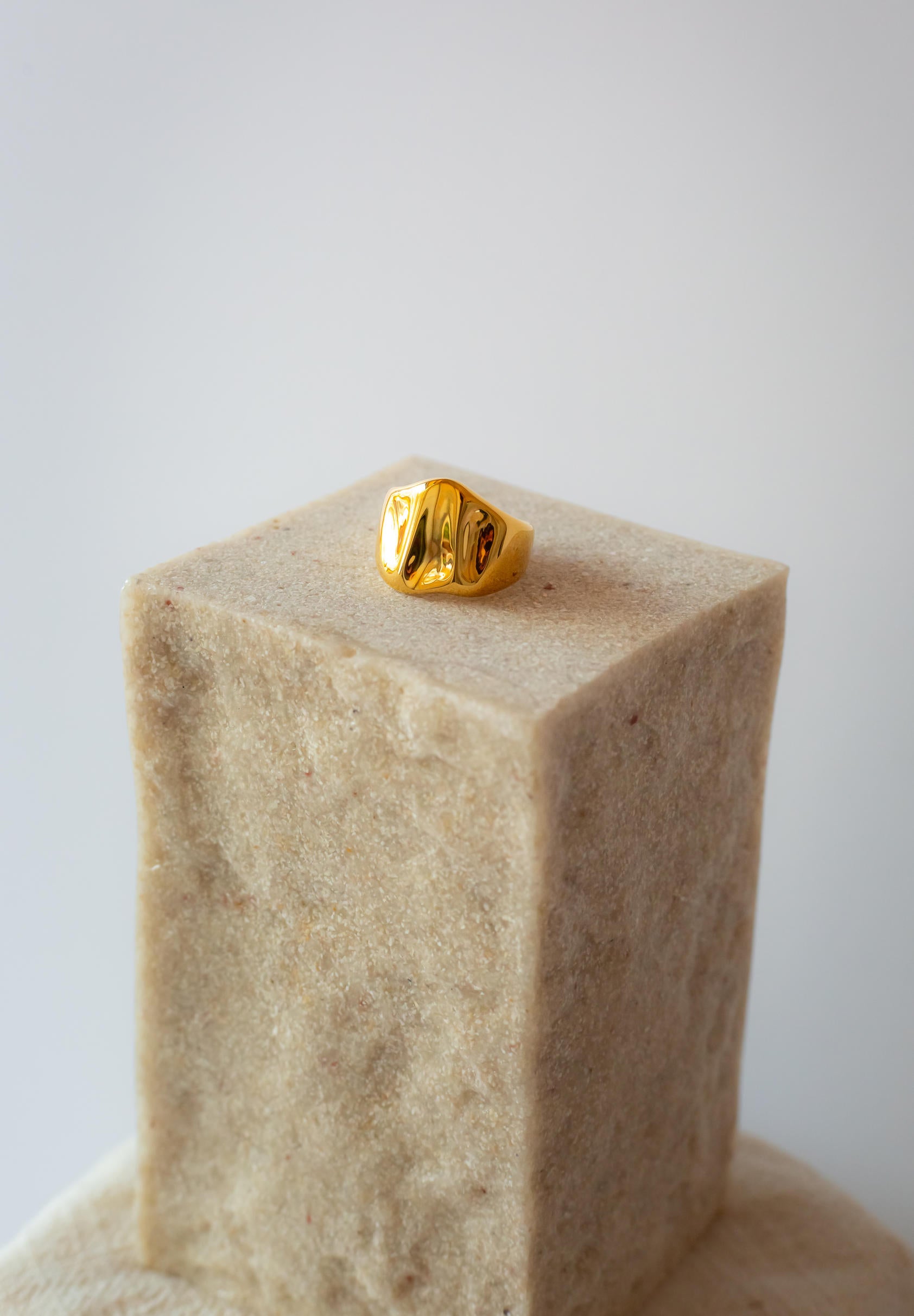 Este anillo de acero inoxidable bañado en oro 18 quilates es la combinación perfecta entre resistencia y estilo. Su frente ancho con textura ondulada pulida lo convierte en un accesorio único, sofisticado y muy fácil de combinar con cualquier look, desde lo casual hasta lo más elegante.