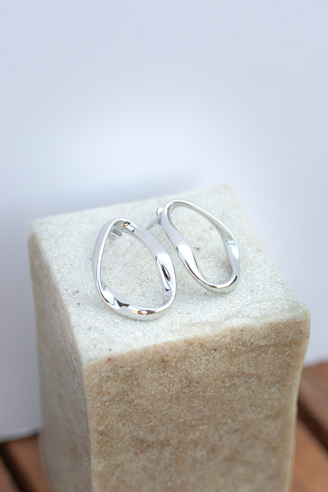 Estos pendientes de acero inoxidable con un diseño orgánico y curvado evocan movimiento y modernidad. Su forma fluida abraza el lóbulo con elegancia, logrando un equilibrio entre minimalismo y sofisticación.