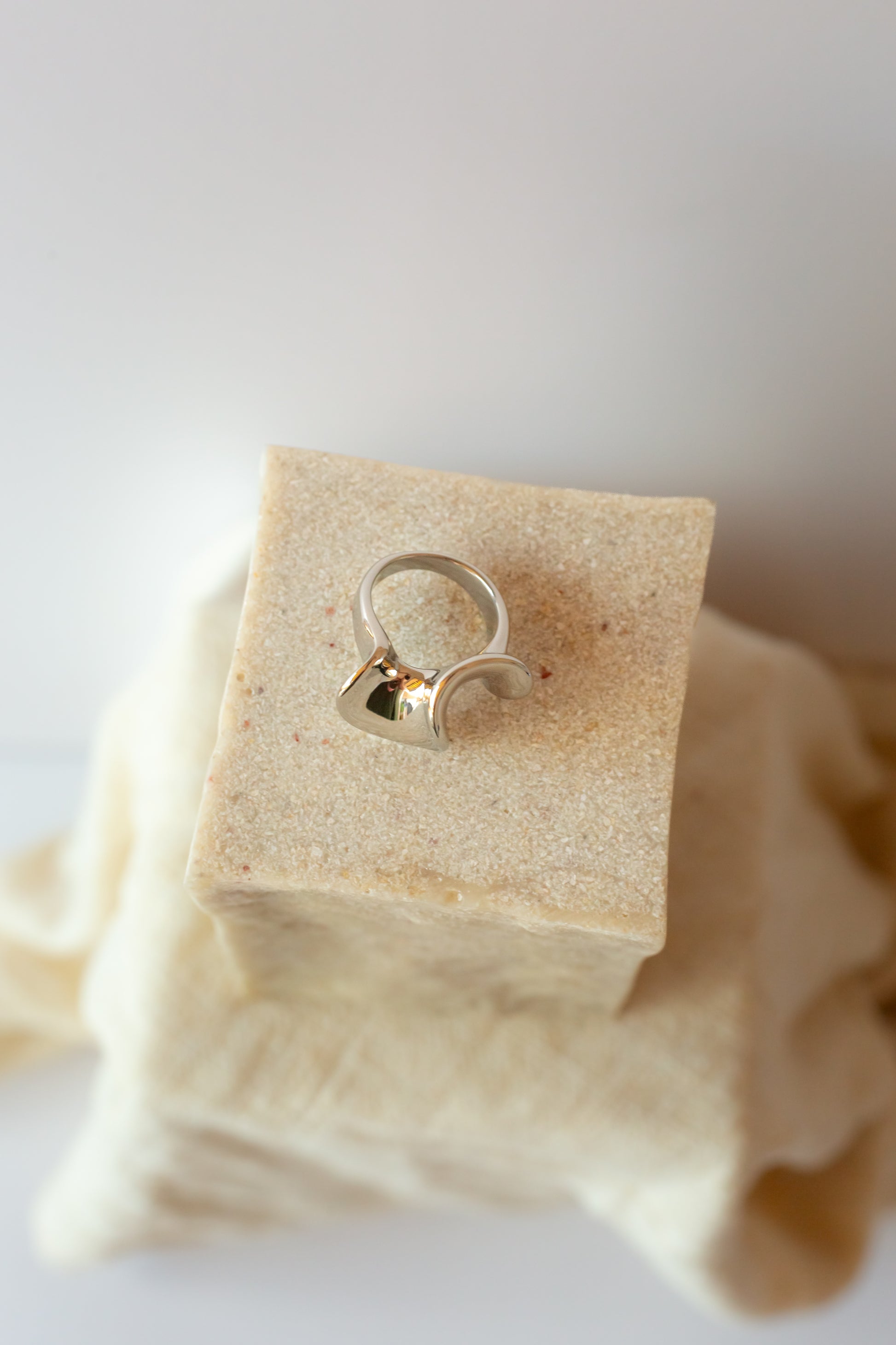 Este anillo de acero inoxidable captura la belleza del movimiento con su diseño ondulado y orgánico. Su forma escultural y pulida evoca la serenidad de una ola, añadiendo un toque de elegancia natural y moderna a tu estilo.
